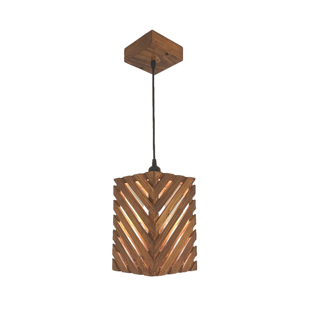 Oblique Brown Wooden Single Hanging Lamp