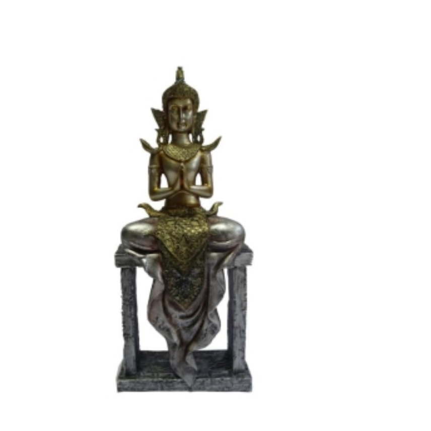 Resin Buddha Statue Sitting on Stand - Antique Finish Decorative Showpiece Black Color
