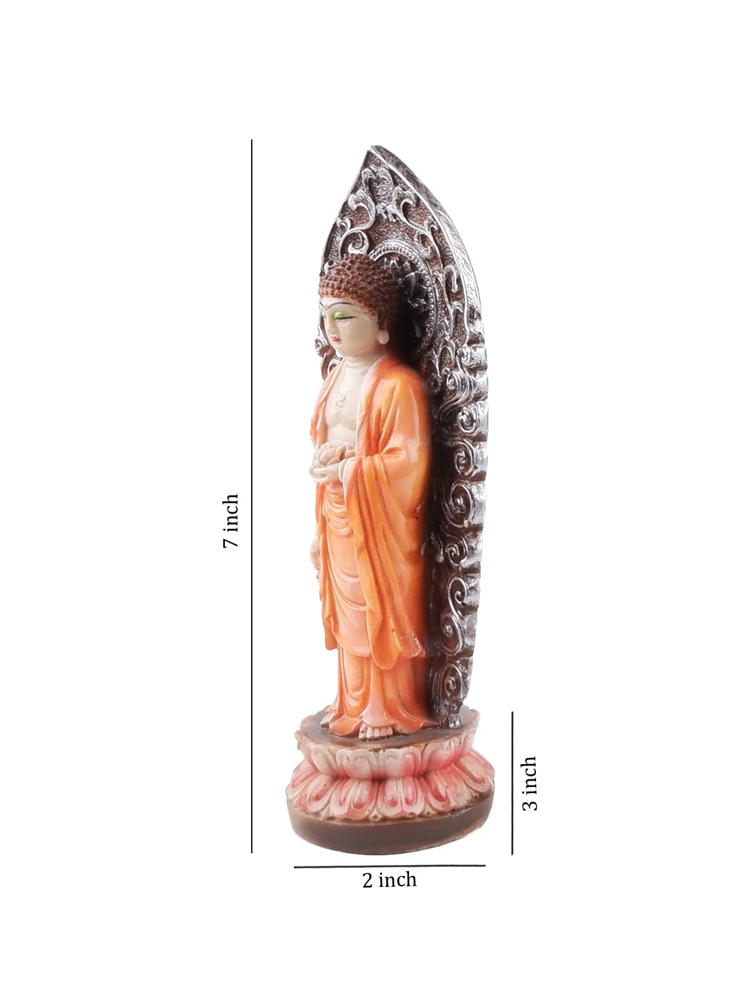 Resin Buddha Standing on Lotus Pedestal Showpiece – 7x3x2 Inches – Handcrafted Spiritual Decor for Home, Office & Meditation Spaces
