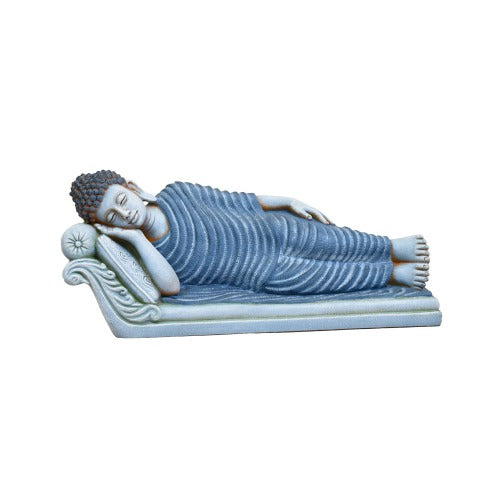 Measuring 7x17x5 inches, this statue captures Buddha’s reclining pose in high-quality resin, offering durability and intricate detailing. Its versatile design complements modern, bohemian, or minimalist interiors, making it perfect for tabletops, meditation corners, or garden niches.