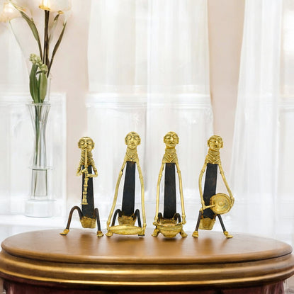 Set of 4 Dhokra Art Tribal Musicians - Golden