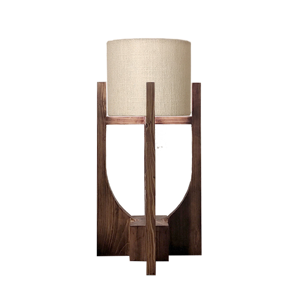The Solitaire Wooden Table Lamp has a stunning and captivating design. The base of the table lamp is handcrafted with solid pine wood and has a unique shape that is inspired by a solitaire ring. The lamp base is topped off by a white and White cylindrical fabric lampshade that completes the awesome look.