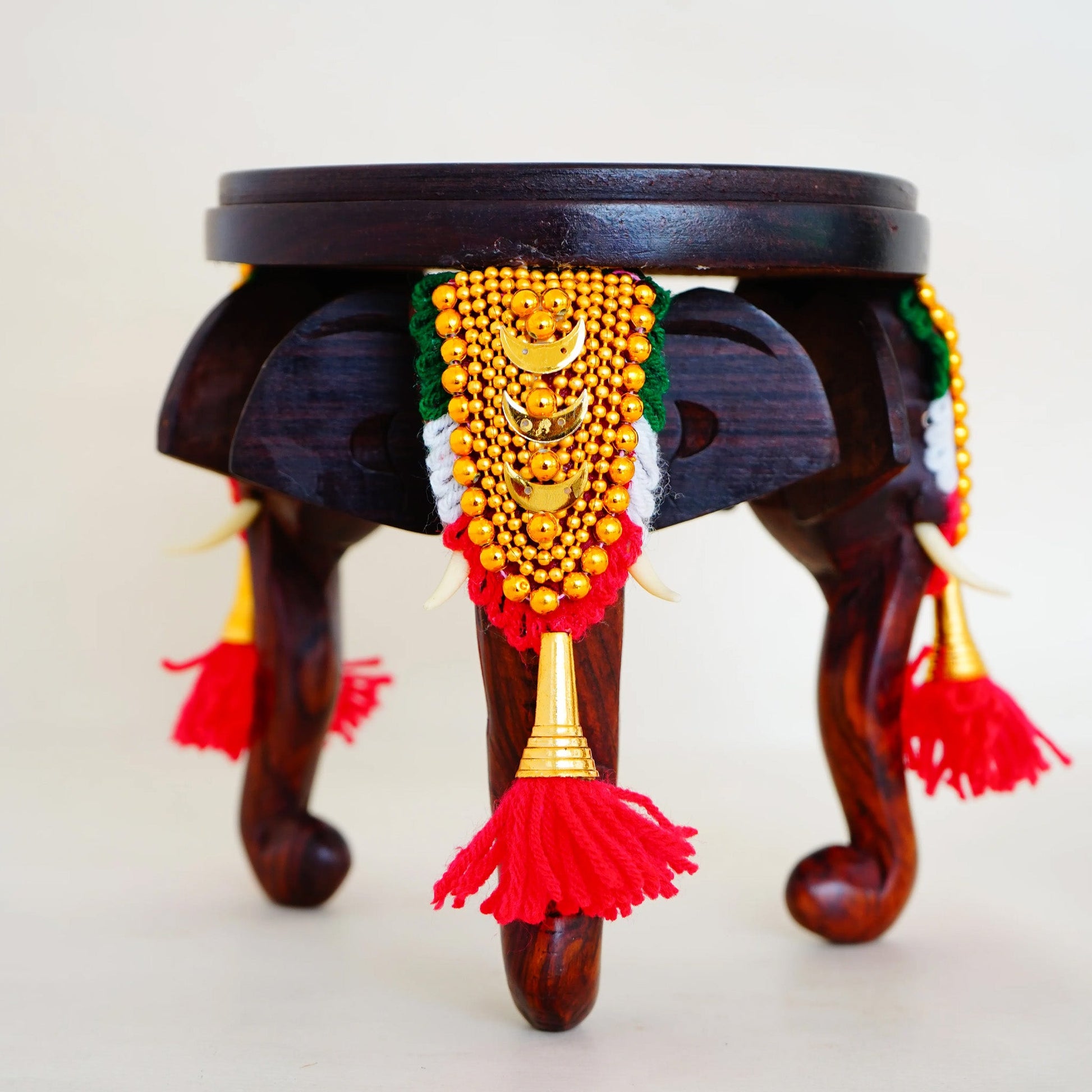 Traditional Three-Headed Wooden Pooram Elephant Stool with Nettipattam