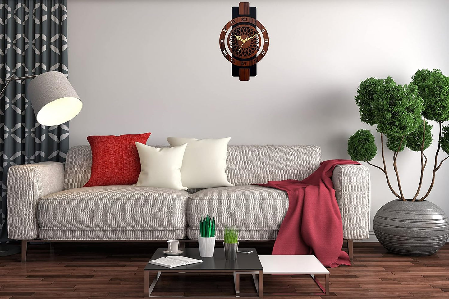 A minimalist black frame accentuates the natural beauty of the wood grain. Perfect for both traditional and modern interiors, this understated clock adds warmth and personality while enhancing your home decor. Ideal for the living room, bedroom, kitchen or dining room, it also makes an excellent gift for those who love all things vintage.