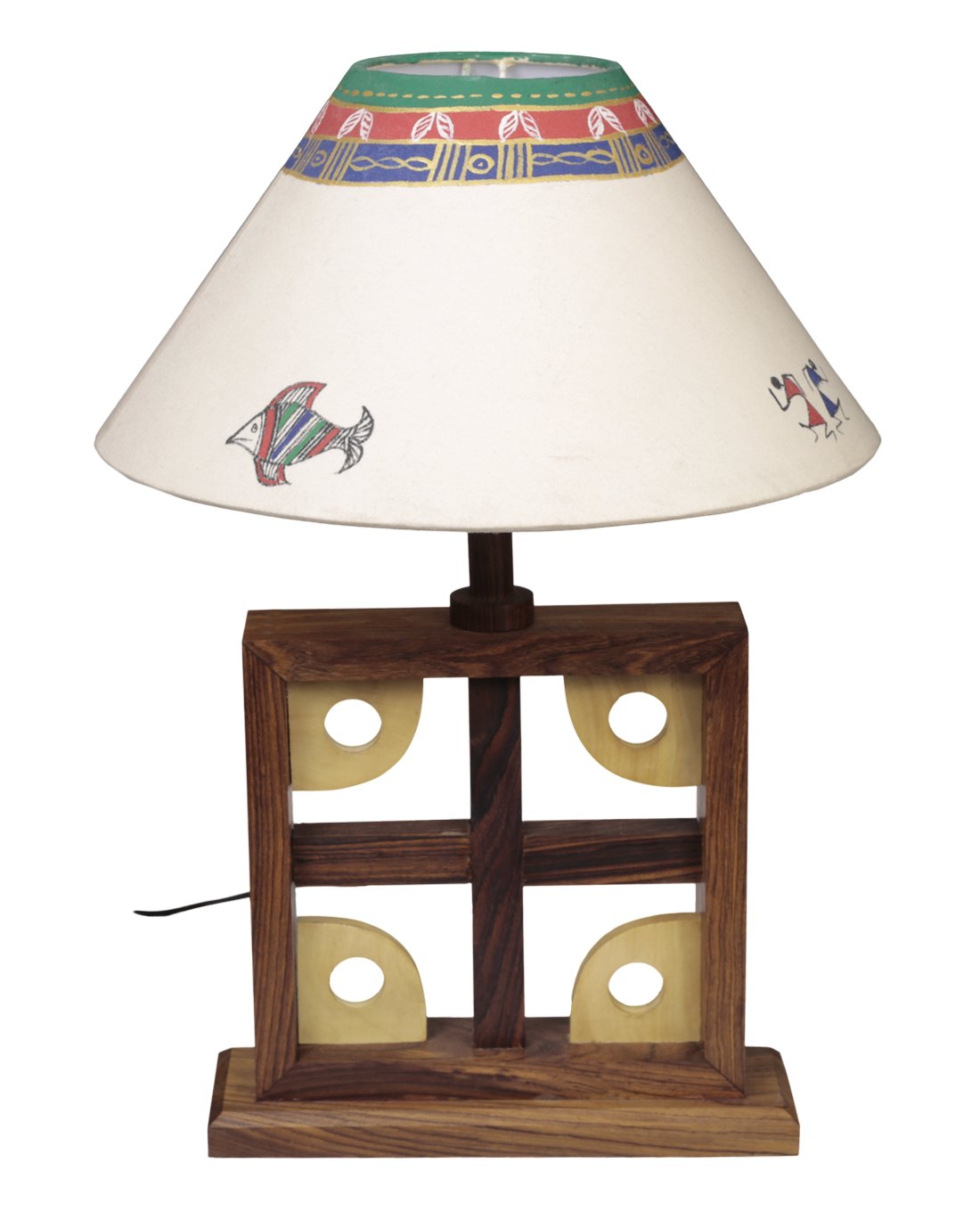 Wooden Table Lamp Artistic Square With Madhubani Handpainted