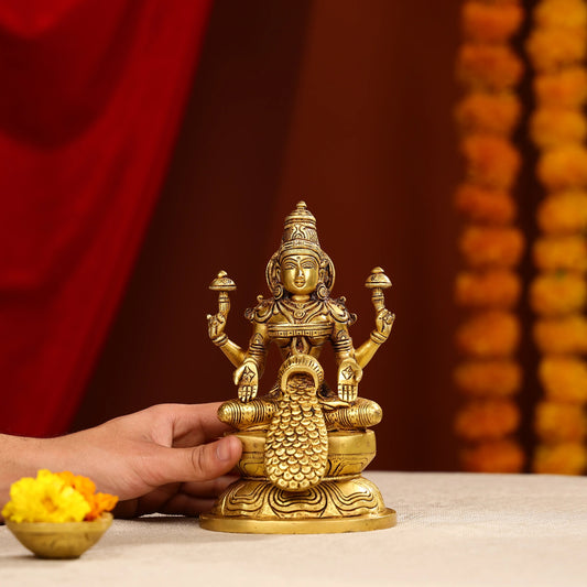 8" Brass Goddess Laxmi Showering Wealth Idol