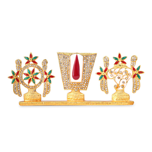 Gold Plated Tirupati Balaji Namam Shankh Chakra Idol β 3.15 Inches
