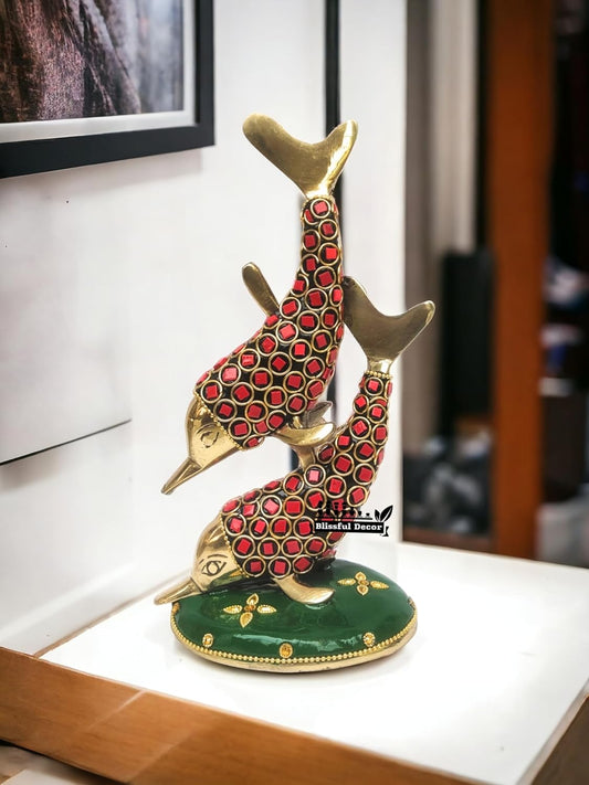 Red & Gold Decorative Dolphin Showpiece